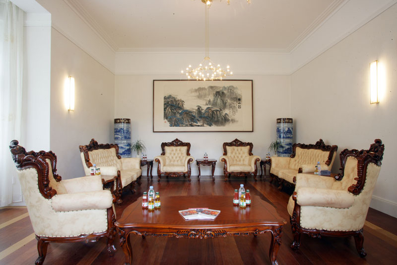Ce projet consiste à renover et à décorer les bâtiments de l’Ambassade de Chine en Allemagne qui sont classés patrimoines culturels allemands.  Ils se trouve aux n° 6, n° 2 et n° 66 de la rue Maïakovski du district de Panko, en centre-ville de Berlin. Le site couvre une superficie totale d’environ 4073 m² et une surface de construction d’environ 2780 m². Un des bâtiments,construit en 1900 et appelé originalement Villa Kasbaum, est classé patrimoine historique de la République fédérale d’Allemagne. Il est en effet le premier bâtiment néoclassique de Hinkel. L’écrivain Hans Fallada (dont le vrai nom est Rudolf Ditzen) a réalisé son grand roman Seul dans Berlin quand il habitait ici. De plus, ce bâtiment était une fois une maison des hôtes d’État de l’Allemagne de l’Est, un lieu de rencontre de l’élite intellectuelle et des hommes politiques. Il est par conséquent chargé d’une valeur historique très importante. Nous avons collaboré étroitement avec le bureau d’études pour examiner un grand nombre de matériaux, de dessins et de photographies  historiques du bâtiment afin de restaurer autant que possible sa façade originale et de préserver son style néoclassique tout en lui donnant une nouvelle vie architecturale. Par ailleurs, un restaurant chinois  a été réaménagé au premier étage du bâtiment de réception. Son intérieur est richement décoré avec des éléments typiques de la tradition chinoise, notamment le dragon.Le deuxième étagea été transformé en un nouvel auditorium moderne et spacieux, doté d’un contrôle électronique entièrement automatique et d’une lumière du jour, et ce pour accueillir de grandes conférences et d’autres activités.