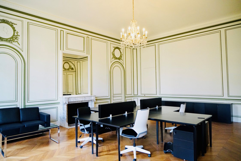 ainsi que la mission pilotage des travaux de restauration des décors ( Peints, Menuiserie, Stuc et staff, Quincaillerie, Cheminées en marbre, Dorures etc.) des salons de réceptioin dans le 1èr étage.